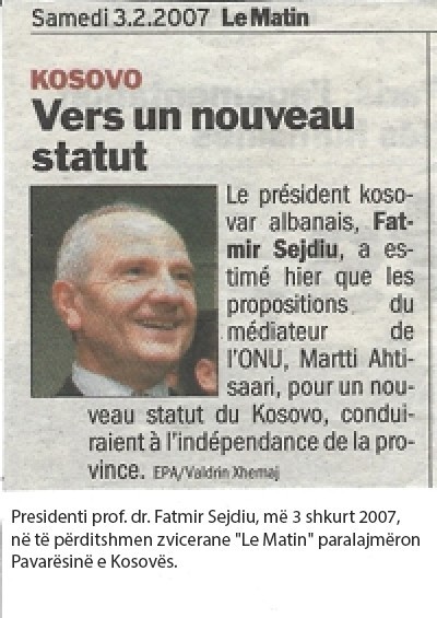 Amanetin e Rugovës e vazhdoi Prof. Dr. Fatmir Sejdiu. Në vitin 2007, ai e çoi vendin drejt pavarësisë, ndonëse e dinte se brenda strukturave të atëhershme kishte njerëz të pabesë. Por, Kosova ishte mbi gjithçka, mbi LDK-në, dhe mbi konfliktet e brendshme.